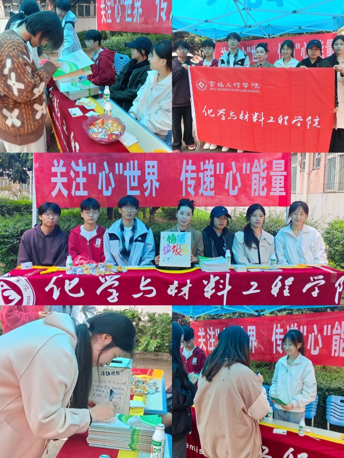 2025年10月10日是第34个世界精神卫生日,为进一步提高大学生心理健康和精神卫生服务可及性,化学与材料工程学院于11号公寓门口开展“关注‘心’世界,传递‘心’能量”主题科普宣传活动。